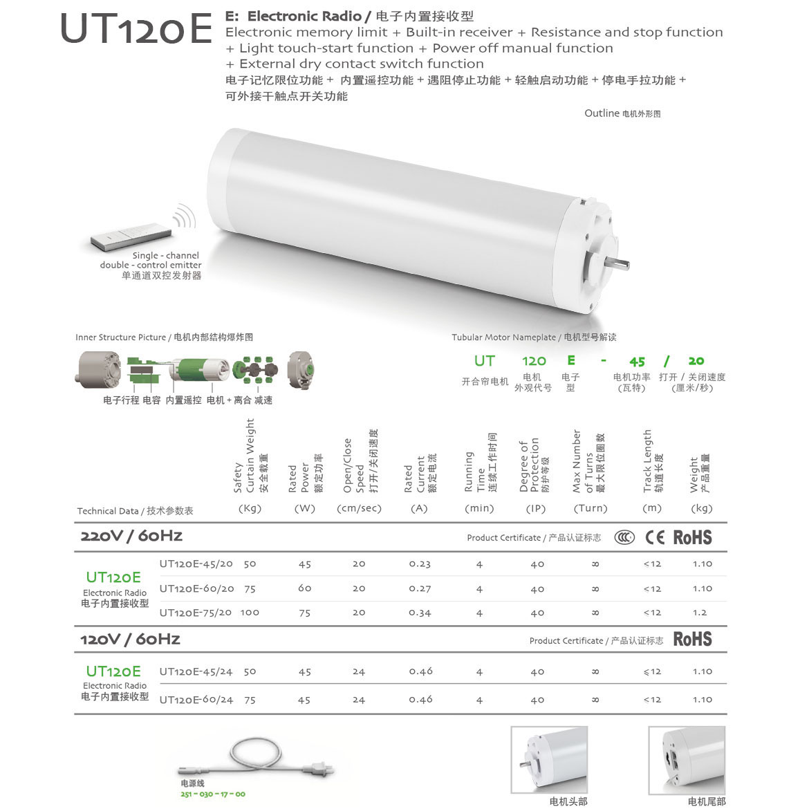 電子記憶限位功能+遇阻停止功能+停電手拉功能+可外接干觸點開關功能
